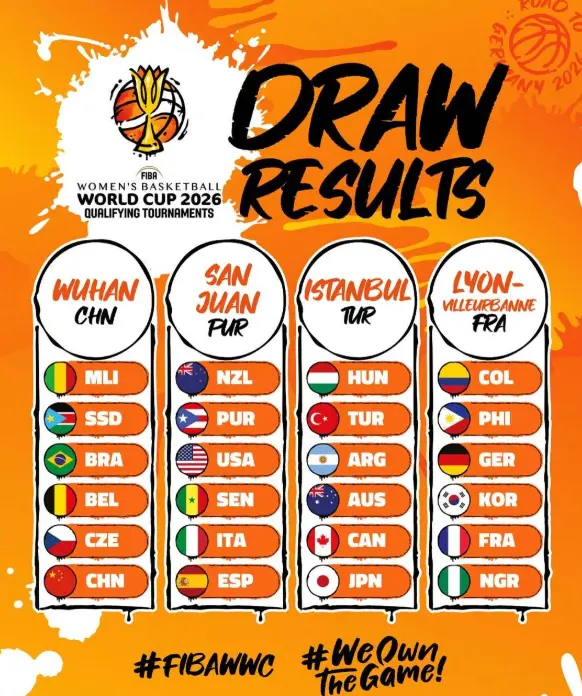 2026年女篮寰宇杯预选赛将于2026年3月11-17日举行,比赛由土耳其伊斯坦布尔、法国里昂(维勒班)、波多黎各圣胡安和中国武汉四座城市共同经办,每个赛区各有6支球队参赛。武汉举办的是A组的比赛。