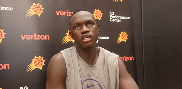 直播吧09月30日讯NBA球队新赛季媒体日,太阳10号秀、南苏丹中锋马卢阿奇罗致记者采访。